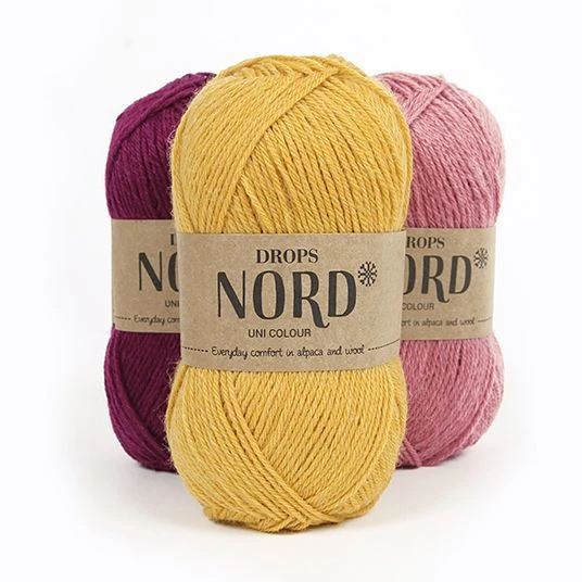 DROPS Nord -lanka on perinteinen 4-säikeinen sukkalanka, jonka koostumus on 45 % superfine alpakkaa (pehmeyden vuoksi), 25 % peruvian highland villaa (lämmön ja muodonkestävyyden vuoksi) ja 30 % polyamidia (vahvuuden ja kestävyyden vuoksi).