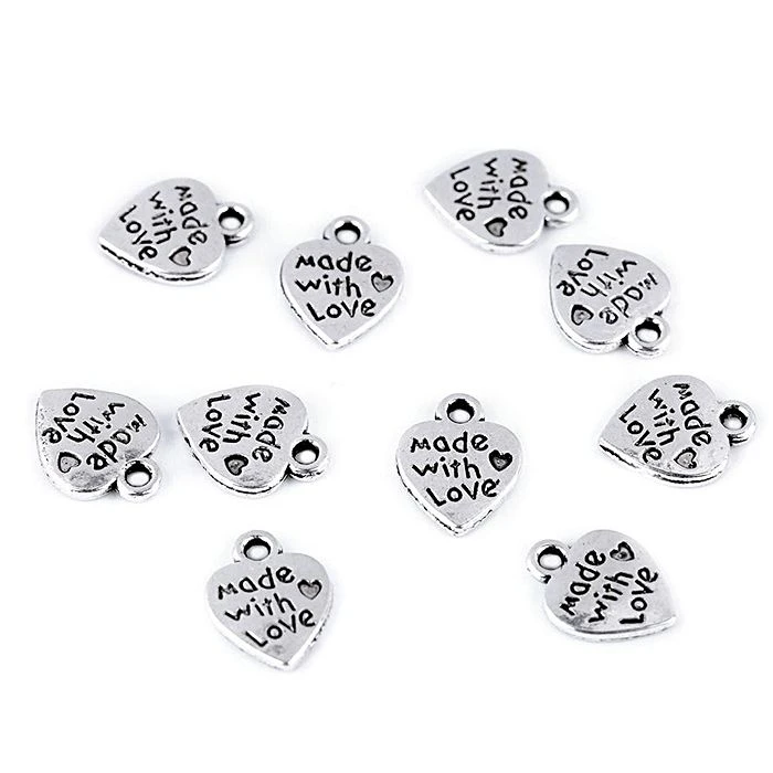 Viimeistele rakkaudella tehdyt käsityösi näillä sydämen muotoisella merkeillä. Merkin molemmin puolin lukee teksti ”Made with love”.