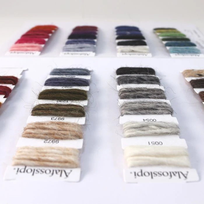 Lankakartassa on aidot lankanäytteet ko. lankalaadusta. Sen avulla värin ja materiaalin valinta helpottuu.