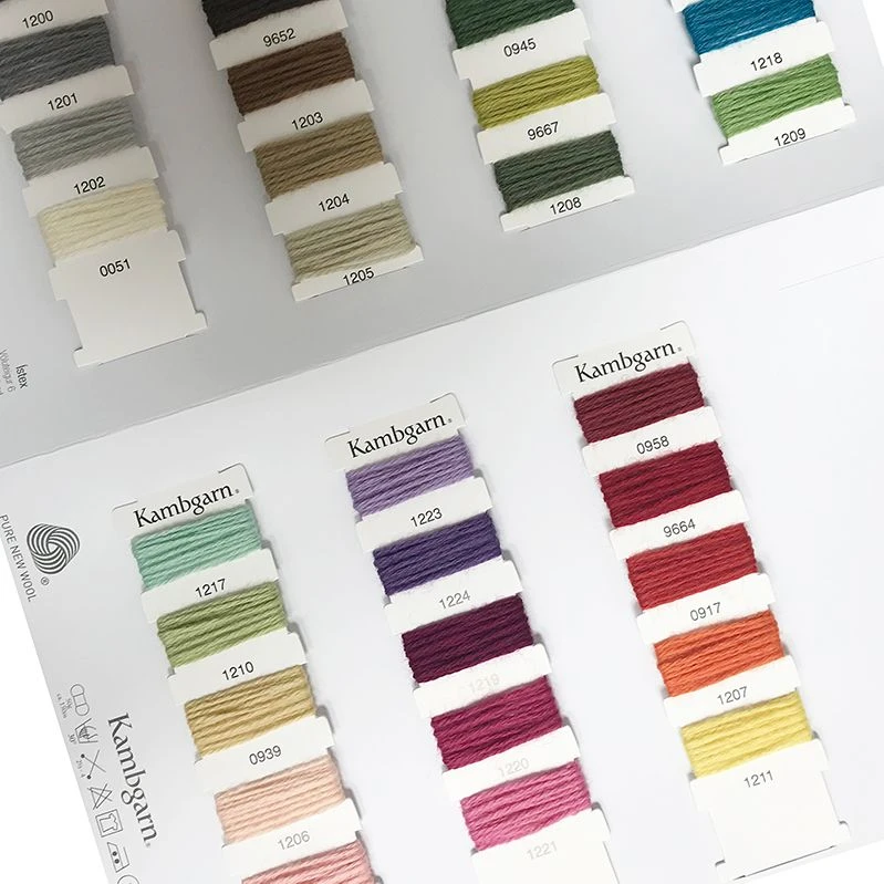 Lankakartassa on aidot lankanäytteet ko. lankalaadusta. Sen avulla värin ja materiaalin valinta helpottuu.