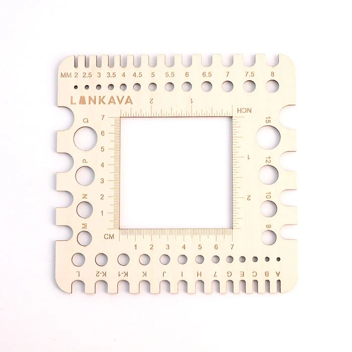Vanerista laserleikattu monikäyttöinen käsityömitta.
