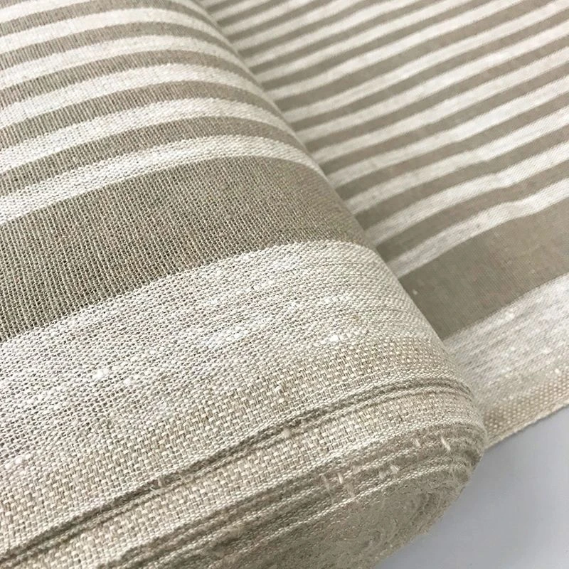Raidallinen pellavakangas 100 % pellavaa, leveys 50 cm. Soveltuu hyvin esim. laudeliinaksi.