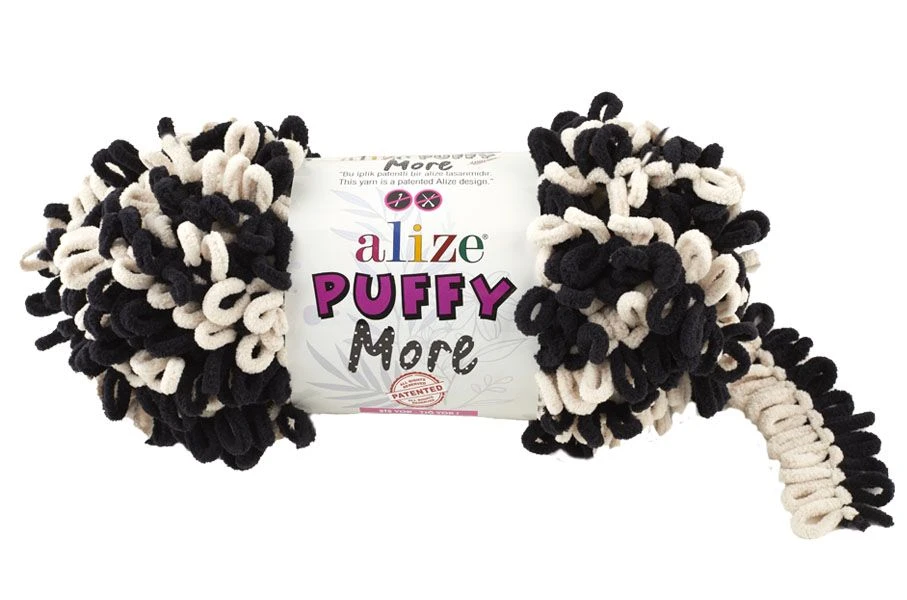 Pehmeä Alize Puffy More on uusi jännittävä versio ihanan pehmeästä sormineulottavasta Puffy-lenkkilangasta. Puffy More -vyyhdissä on kontrastiväriset lenkit, joita neulomalla voit muodostaa jännittäviä kuviopintoja. Helpolla tekniikalla teet käden käänteessä näyttäviä torkkupeittoja, tyynynpäällisiä ja muita upeita sisustustöitä omilla tai valmiilla kuvioilla ja kuoseilla.