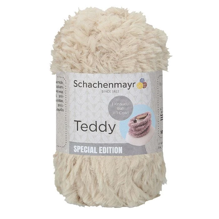 Pehmeä ja pörröinen Teddy-lanka sopii hyvin asusteisiin, sisustustuotteisiin tai esimerkiksi pehmoleluihin.